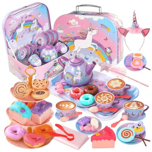 O conjunto de chá de princesa Quiet Flower é feito de ferro revestido de estanho de alta qualidade e plástico sem BPA. Cada conjunto passou por um processo de produção rigoroso para garantir bordas lisas e sem rebarbas, tornando a experiência de festa de chá segura e sem preocupações para as crianças. O brinquedo de simulação de cozinha infantil permite que as crianças aproveitem a diversão do RPG, preparando seus petiscos favoritos para satisfazer a fome e a sede na brincadeira. O conjunto de festa de chá infantil é adequado para 4 pessoas brincarem, crianças e pais participam juntos, estimulando a criatividade das crianças, desenvolvendo a cognição, promovendo o trabalho em equipe e melhorando as habilidades de linguagem e comunicação. O conjunto inclui bules, xícaras ou xícaras de café, pratos, colheres, suportes para bolo em camadas, sobremesas, toalhas de mesa e até mesmo bastões de fada da princesa e tiaras de unicórnio, tornando o uma escolha única para uma festa de chá de princesa inesquecível. O conjunto vem com uma linda caixa de armazenamento portátil, tornando os brinquedos ordenados, fáceis de organizar e transportar. É o presente perfeito para uma menina de 3 a 12 anos em ocasiões como aniversários, Páscoa, Natal ou Ano Novo, tornando sua viagem cosplay mais emocionante e cheia de boas lembranças.