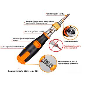 Com 24 dentes e encaixe magnético, é garantido que o bit seja travado com segurança durante o uso e removido de maneira rápida e fácil para troca de bit. Com o encaixe magnético os bits fiquem presos sem a necessidade de ficar rosqueando e desrosqueando para a troca deles, facilitando a troca e agilizando o trabalho.