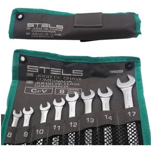 Descrição Fabricadas em Aço Cromo Vanádio, material de grande qualidade e resistência para . CONTÉM 1 Jogo De 08 Chaves Combinadas - Boca e Estria - Aço Cromo Vanadio Marca Stels 08 mm 09mm 10mm 11mm 12mm 13mm 14mm 117mm + estojo tipo esteira
