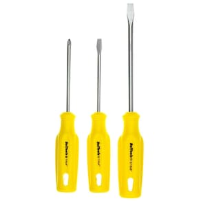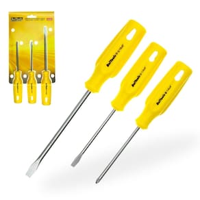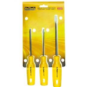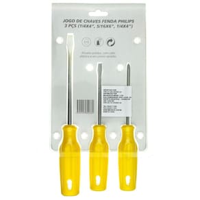 Jogo de chaves de fenda/phillips, composto por 3 peças, sendo: 2 chaves de fenda (1/4" x 4" e 5/16" x 6") e 1 chave phillips (1/4" x 4").
