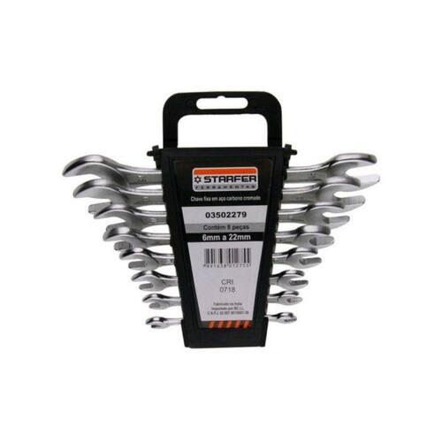A Chave fixa é ideal para aperto e desaperto de parafusos ou porcas com perfil quadrado ou sextavado. Fabricado em aço carbono oferece durabilidade e resistência, para funcionamento adequado é necessário usar a chave de tamanho compatível com a cabeça da porca ou parafuso.Características técnicas:Material: Aço carbono níquel-cromadoMedidas: 6 a 32mmQuantidade: 12 peças + suporte plásticoTipo de chave: FixaMarca: StarferRef.: 3502295Conteúdo da Embalagem:• 01 Suporte plástico• 01 Chave fixa de 6x7mm | 8x9mm | 10x11mm | 12x13mm | 14x15mm | 16x17mm | 18x19mm | 20x22mm | 21x23mm | 24x26mm | 25x28mm | 27x32mm