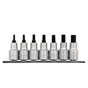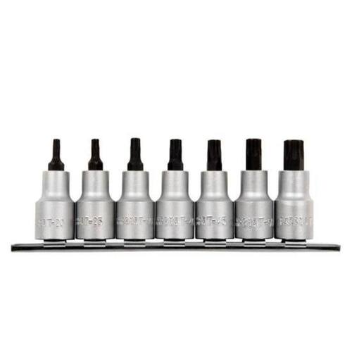 O conjunto contém 7 peças de diferentes tamanhos, que são compatíveis com encaixes de 1/2 polegada. Essas chaves soquete são projetadas para serem usadas em parafusos com cabeça hexalobular, também conhecidos como Torx, que são comumente s em aplicações automotivas e industriais. Pesquisa:jogo de chaves|soquete|hexalobular|chaves waft|ferramentas