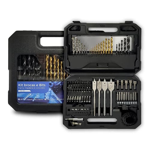 Kit completo com diversas funcionalidades para furadeiras e parafusadeiras. A solução para quem necessita fazer diversos serviços de manutenção e reparo em superfícies como o concreto, madeira e metal. Ela possui brocas e bits que garantem uma variedade soluções para os trabalhos do dia a dia. Pontas e Brocas feitas de aço inox de alta qualidade garantindo uma ótima qualidade de serviço atendendo suas demandas.