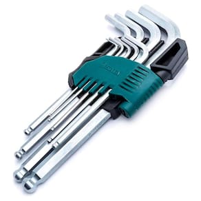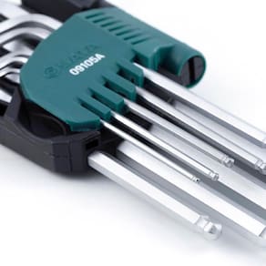 Extremamente versátil, oferece um ângulo de inclinação de 30º para executar tarefas em locais de difícil acesso devido à sua ponta abaulada. Sua ponta reta garante um ajuste preciso para um aperto firme, enquanto as pontas chanfradas proporcionam um acesso mais rápido. Seu formato mais longo garante mais torque com menor esforço. Fabricadas em aço cromo vanádio com tratamento térmico para excelente desempenho, resistência e segurança, superando as especificações ANSI. Acompanha suporte plástico para acomodar todas as peças, impedindo que as chaves escapem da caixa de ferramentas, e possui um acabamento detalhado para facilitar a retirada das chaves. Possui o mix de tamanhos perfeito para atender às principais necessidades, sendo utilizada para apertar e desapertar parafusos de cabeça sextavada interna, sendo muito útil nas áreas de: manutenção de máquinas industriais, manutenção de motores e peças automotivas, montagem e desmontagem de móveis, e manutenção em eletrodomésticos.