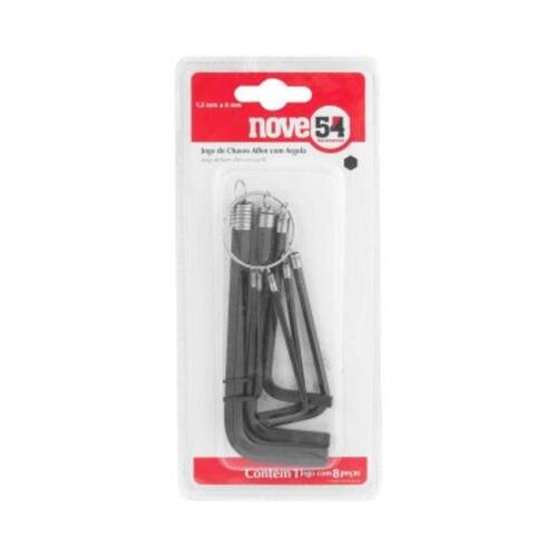 O jogo de chaves hexagonais (allen) curta, c/ argola, 1,5 mm a 8,0 mm, 8 peças, NOVE54 possui tratamento fosfatizado preto, garantindo maior resistência à corrosão/oxidação. É indicado para apertar e soltar parafusos com sextavado interno.