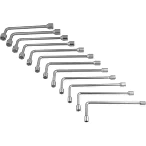 Jogo de chaves biela Tipo L , composto por 12 peças, sendo: 8 mm, 9 mm, 10 mm, 11 mm, 12 mm, 13 mm, 14 mm, 15 mm, 16 mm, 17 mm, 18 mm e 19 mm.