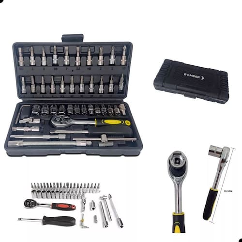 Potencialize sua eficiência em trabalhos variados com o Conjunto de Chave Catraca Profissional de 46 peças. Essencial para tarefas precisas, o conjunto oferece ferramentas robustas e versáteis. A caixa de ferramentas inclusa facilita o transporte, abrigando mangas de chave de fenda, soquetes hexagonais, padrão e cruz, junta universal, chaves Allen, haste curta-circuito, poste, coluna elástica, chave de catraca, haste quadrada, controle deslizante e conector de cabeça de broca. Este conjunto completo atende às demandas de profissionais que buscam praticidade e qualidade, proporcionando um kit abrangente para suas necessidades.