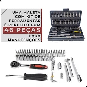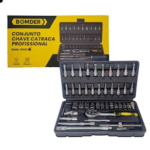 Conjunto Chave Catraca Profissional 46 Peças Material de Alta Qualidade Essencial para Trabalhos Precisos e Eficientes Ampla Seleção de Componentes Alta Versatilidade Ferramentas Robustas de Fácil Manuseio Itens Inclusos: