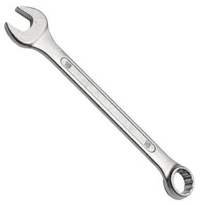Jogo de chaves combinadas em Aço Forjado, com medidas em milímetros, sendo chave Estrela de uma lado da chave e chave fixa do outro lado, ambas com a mesma medida.