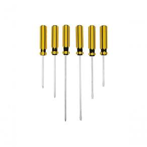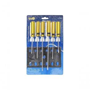 Jogo De Chaves De Fenda E Philips Western Com 6 Pecas Descricao Chave de Fenda uma ferramenta pratica e essencial na sua maleta de ferramentas. com haste em Aco Vanadio e PVC. Uma chave de fenda linda e eficaz para suas necessidades! - Cuidados: Para reduzir o risco de lesoes, sempre use adequadamente equipamentos de protecao individual (oculos de protecao, protetor auricular etc.) necessarios ao trabalho. Nao utilize em aparelhos energizados, ferramenta nao isolada. Use o tipo e tamanho correto de ferramenta para cada tipo de trabalho. Armazene em local limpo e seco, longe de umidade. Guarde em local seguro. Guarde estas instrucoes para futuras consultas. Manter fora do alcance das criancas. - Indicacao: Aperto e desaperto de parafusos. *Imagens meramente ilustrativas. Especificacao Tecnica Contem: 3 Chave Fenda: 1/8x3, 1/8x4 e 1/8x6 3 Chave Philips: 1/8x3, 1/8x4 e 1/8x6 - Dimensoes da Embalagem: 16 x 1,6 x 26,5cm (CxLxA) - Tipo de Embalagem. Blister - Quantidade Inner: 12 pecas - Dimensoes Inner: 45 x 28 x 4cm (CxLxA) - Quantidade Master: 60 pecas - Dimensoes Master: 46 x 25,5 x 19cm (CxLxA) - Material: Aco 45 e PVC (Policloreto de vinil) - Cor: Amarelo - Marca: Western - Origem: China Descricao Chave de Fenda uma ferramenta pratica e essencial na sua maleta de ferramentas. com haste em Aco Vanadio e PVC. Uma chave de fenda linda e eficaz para suas necessidades! - Cuidados: Para reduzir o risco de lesoes, sempre use adequadamente equipamentos de protecao individual (oculos de protecao, protetor auricular etc.) necessarios ao trabalho. Nao utilize em aparelhos energizados, ferramenta nao isolada. Use o tipo e tamanho correto de ferramenta para cada tipo de trabalho. Armazene em local limpo e seco, longe de umidade. Guarde em local seguro. Guarde estas instrucoes para futuras consultas. Manter fora do alcance das criancas. - Indicacao: Aperto e desaperto de parafusos. *Imagens meramente ilustrativas. Especificacao Tecnica Contem: 3 Chave Fenda: 1/8x3, 1/8x4 e 1/8x6 3 Chave Philips: 1/8x3, 1/8x4 e 1/8x6 - Dimensoes da Embalagem: 16 x 1,6 x 26,5cm (CxLxA) - Tipo de Embalagem. Blister - Quantidade Inner: 12 pecas - Dimensoes Inner: 45 x 28 x 4cm (CxLxA) - Quantidade Master: 60 pecas - Dimensoes Master: 46 x 25,5 x 19cm (CxLxA) - Material: Aco 45 e PVC (Policloreto de vinil) - Cor: Amarelo - Marca: Western - Origem: China Ean: 7897186076645