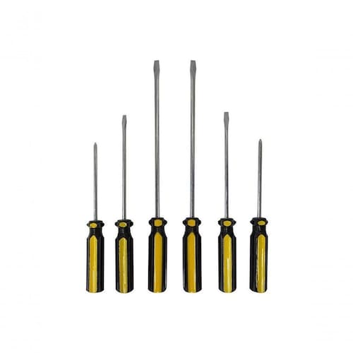 Jogo De Chaves De Fenda E Philips Western Com 6 Pecas Descricao CHAVES 4 FENDAS 2 PHILIPS 6 PECAS *Imagens meramente ilustrativas. Especificacao Tecnica - Dimensoes da Peca: 2 Fendas: 1,7 x 1,7 x 17cm 2 Fendas: 1,7 x 1,7 x 22cm 2 Philips: 1,7 x 1,7 x 14,5cm Rack: 3,3 x 2,5 x 15cm - Dimensoes da Embalagem: 17 x 3 x 28cm - Quantidade Master: 30 Pecas - Dimensoes Master: 51 x 31 x 19,5cm - Material: PVC (Policloreto de Vinil) e Aco carbono - Cor: Cabo preto com amarelo - Tipo de Embalagem: Blister - Marca: Western - Contem 6 unidades 2 Fendas: 4mm x 4 2 Fendas: 5mm x 6 2 Philips: 4mm x 3 Descricao CHAVES 4 FENDAS 2 PHILIPS 6 PECAS *Imagens meramente ilustrativas. Especificacao Tecnica - Dimensoes da Peca: 2 Fendas: 1,7 x 1,7 x 17cm 2 Fendas: 1,7 x 1,7 x 22cm 2 Philips: 1,7 x 1,7 x 14,5cm Rack: 3,3 x 2,5 x 15cm - Dimensoes da Embalagem: 17 x 3 x 28cm - Quantidade Master: 30 Pecas - Dimensoes Master: 51 x 31 x 19,5cm - Material: PVC (Policloreto de Vinil) e Aco carbono - Cor: Cabo preto com amarelo - Tipo de Embalagem: Blister - Marca: Western - Contem 6 unidades 2 Fendas: 4mm x 4 2 Fendas: 5mm x 6 2 Philips: 4mm x 3 Ean: 7897186012735