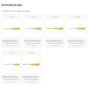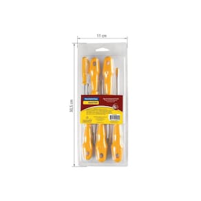 Se você preza por um bom kit de ferramentas, precisa do Jogo de Chaves de Fenda Tramontina MASTER Yellow 6 Peças. Um jogo que traz chaves de fenda com ponta chata, ponta cruzada e ainda uma chave clipe, ideal para fixar em cintos e alças e que é um coringa na hora de apertar ou afrouxar parafusos. Todas as peças são muito resistentes: têm hastes produzidas em aço especial cromado e cabos em polipropileno injetado. Além disso, são altamente duráveis e vão levar muito mais praticidade na execução de suas tarefas. Garanta o seu e facilite o seu dia a dia!