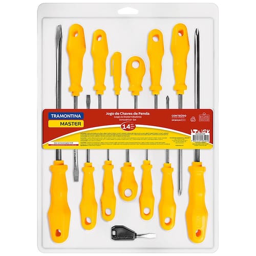Tenha materiais práticos e funcionais perto de você! O Jogo de Chaves de Fenda Tramontina 14 Peças traz ferramentas utilitárias que auxiliam em diferentes projetos. São quatorze chaves de fenda produzidas com materiais de qualidade e bom gosto.