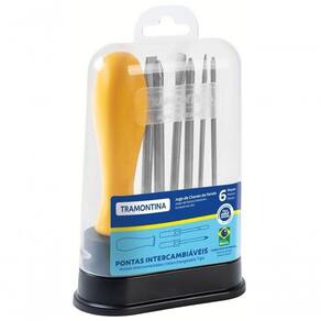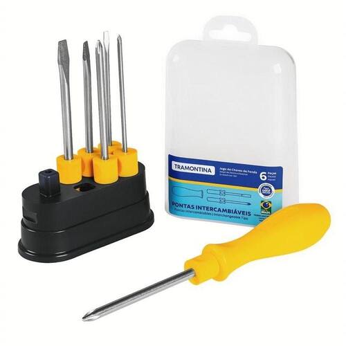 Versatilidade que cabe na palma da mão. O Jogo de Chaves de Fenda Tramontina com Pontas Intercambiáveis 6 peças traz agilidade para os reparos do dia a dia, reunindo diversas funções em um único kit compacto. As pontas trocáveis facilitam qualquer tarefa, economizam espaço e aumentam a eficiência. Produzido com materiais resistentes e testado sob rigorosos padrões de qualidade, é uma solução prática e para quem não gosta de perder tempo.