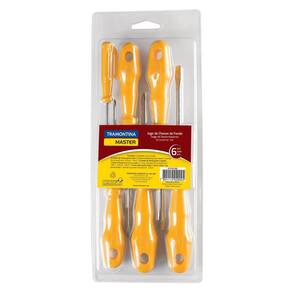 Se você preza por um completar seu kit de ferramentas, precisa do Jogo de Chaves de Fenda Tramontina Yellow 6 Peças. Um jogo que traz chaves de fenda com ponta chata, ponta cruzada e ainda uma chave clipe, ideal para fixar em cintos e alças e que é um coringa na hora de apertar ou afrouxar parafusos. Todas as peças são muito resistentes: têm hastes produzidas em aço especial cromado e cabos em polipropileno injetado. Além disso, são altamente duráveis e vão levar muito mais praticidade na execução de suas tarefas. Garanta o seu e facilite o seu dia a dia! Orientações As hastes as chaves de fenda são testadas em máquinas de ensaio específicas, para verificar o perfeito balanço entre resistência mecânica e dureza.Cabos injetados com material de alta resistência.Os dimensionais das pontas são verificados comgabaritos-padrão, calibrados e certificados.As ferramentas são produzidas e testadas conforme normas específicas. Observações Use óculos, luvas e outros equipamentos de proteção de acordo com a tarefa a ser executada. Utilize chaves de fenda isoladas, identificadas pela marcação 1.000 V, quando for necessário trabalhar em locais com corrente elétrica. Importante: nestes casos, inspecione a integridade da isolação elétrica, e, se aparecerem trincas na isolação, suspenda o uso imediatamente. Utilize chaves com ponta adequada para cada tipo de fenda, para realizar a tarefa de forma mais rápida e segura. Respeite o torque estabelecido por norma para cada bitola. Não utilize as chaves de fenda como formão ou alavanca. Não altere as dimensões originais da ponta para obter outro perfil. Armazene em local limpo e seco. Características Gerais EAN13 7891114029925 DUN14 17891114029922 NCM 8205.40.00 Peso Líquido 0,2000 kg. Peso Bruto 0,2000 kg. Metragem 0,001174 m³. Dimensões Embalagem (Compr. X Larg. X Alt.) 305x 110x 35 mm. Cor 1 FFD200 Hexa