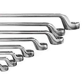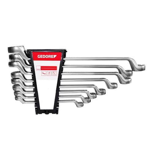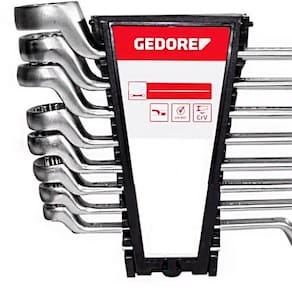 Fabricadas em aço cromo-vanádio Gedore Red e acabamento cromado fosco. Possui posição da boca de 15° e já são fabricadas conforme normas DIN 895. Incluso suporte especial Gedore Red.