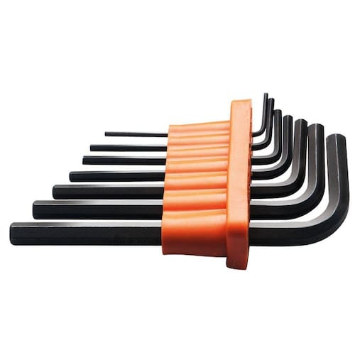 Orientações Haste em aço cromo vanádio temperada.Acabamento fosfatizado.As chaves tipo L ou Cabo T são submetidas a ensaios de torque e de dureza para analisar a resistência mecânica e atender aos valores da norma específica.Grande variedade de formas, perfis de pontas e comprimentos para as diversas aplicações automotivas e industriais.As chaves tipo L possuem dois braços de comprimentos diferentes, e ambas extremidades podem ser utilizadas dependendo do local onde será realizado o trabalho. Ao utilizar o braço mais longo tem-se mais torque, enquanto o braço mais curto promove uma operação mais rápida.Apertar ou afrouxar parafusos com sextavado interno.As ferramentassão produzidas e testadas conforme normas específicas. Observações Use óculos, luvas e outros equipamentos de proteção individual (EPIs) de acordo com a tarefa a ser executada. Utilize o tamanho certo da chave para cada bitola de parafuso. Não faça aproximações de dimensionais, polegadas para milímetros, por exemplo. Não use tubos ou extensões para obter mais torque. Não golpeie as chaves. Não modifique o braço de alavanca da chave usando tubos ou barras extensoras. Armazene em local limpo e seco. Características Gerais