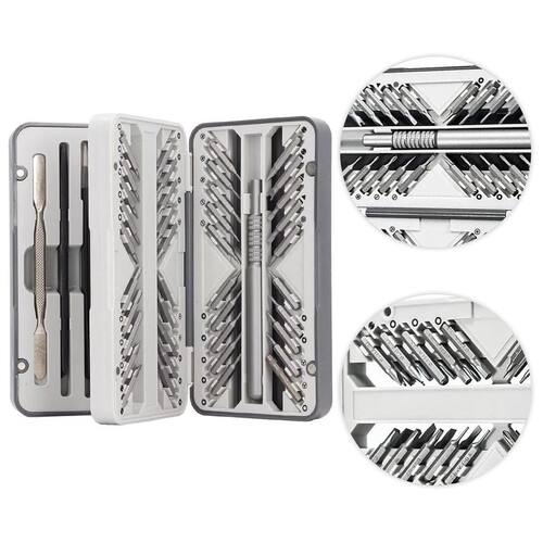 60 pontas de precisão: Parafusos de todos os tipos e tamanhos, incluindo fenda, Phillips, Torx, estrela, triângulo e agulha. Cabo ergonômico: Para maior conforto e controle durante o uso. Estojo compacto e organizado: Para manter todas as suas chaves em um só lugar. Feito de aço de alta qualidade: Durável e resistente, pronto para lidar com os reparos mais desafiadores.