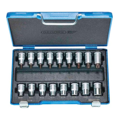 Jogo de Chaves Soquete Torx 17 Peças T20 à T 60 e E10 à E24 - Gedore 024795