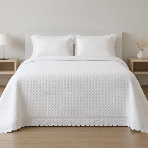 Transforme seu quarto em um ambiente sofisticado e acolhedor com esta elegante Colcha com Renda, confeccionada em 100% poliéster de alta qualidade. Seu toque extremamente macio proporciona uma experiência de conforto incomparável, tornando suas noites ainda mais agradáveis.