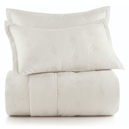 Jogo de Colcha possui embalagem confeccionada em tecido, com a mesma cor da Colcha. A embalagem de tecido da colcha apresenta uma abordagem sustentável, com menos uso de plástico.