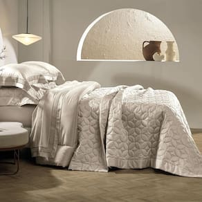 Confeccionado com o mais puro algodão, a suavidade excepcional e o brilho sereno do cetim proporcionam uma experiência tátil luxuosa. Os detalhes matelassados, delicadamente desenhados, adicionam uma camada de textura que transforma a colcha em uma peça única, revelando um cuidado artesanal excepcional.