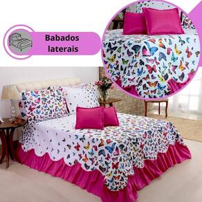 Jogo de Colcha Queen Belize 6 Peças Matelassado com Babado Variação: Borboletas Pink Olá Se você procura transformar seu quarto em um ambiente elegante e acolhedor sem abrir mão da praticidade, você está no lugar certo Apresentamos o Kit 6 Peças Cobre Leito Colcha Casal Queen Belize com Babados - a escolha ideal para quem deseja um quarto sofisticado e aconchegante todos os dias. Muitas pessoas sentem dificuldade em encontrar um conjunto de cama completo, bonito e fácil de cuidar. Esse kit resolve tudo isso em uma única compra, oferecendo design diferenciado e qualidade garantida. Benefícios comprovados pelos clientes O quarto ficou muito mais bonito e organizado. Adorei o acabamento - Luciana M. Produto resistente e confortável. Lavagem prática no dia a dia. - Renata S. Conjunto completo, não precisei comprar capas separadas. Excelente custo-benefício - Juliano T. Especificações técnicas: 01 Cobre-leito 2,40 m x 2,50 m 02 Porta-travesseiros 0,50 m x 0,70 m 02 Capas de Almofada 0,40 m x 0,40 m Tecido superior: Microfibra estampada 100% poliéster Manta: 100% poliéster Inferior: 100% polipropileno Tecido matelassado com babados elegantes Indicado para cama Casal Queen Enchimentos de travesseiros e almofadas não acompanham o produto Sua compra tem de 3 meses contra defeitos de fabricação, proporcionando segurança e confiança. O Kit 6 Peças Cobre Leito Queen Belize é um conjunto completo, confortável e durável. limitado - garanta já o seu e transforme seu quarto hoje mesmo Agradecemos sua visita à Atual Ecommerce. Conte conosco para produtos de qualidade e entrega rápida