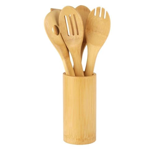 Jogo de Colheres de Bambu com Suporte 5 Peças - A/CASA