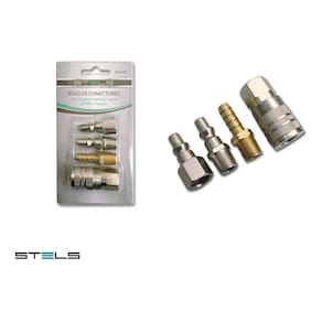 Jogo De Engate Rápido Para Mangueira 1/4 Polegadas Cromado E Dourado - O Jogo de Engate Rápido para Mangueira 1/4' Cromado e Dourado faz parte do catálogo de produtos da Stels e traz toda qualidade e segurança dos produto da marca. Produto fabricado com materiais de qualidade que garantem uma maior resistência e durabilidade. A Stels é uma marca da Tools World, empresa fundada em 1995 em Moscou com a premissa de atender o mercado nacional com ferramentas manuais de alta qualidade e com os melhores preços do mercado. A marca segue em crescimento e utilizando tecnologias avançadas, aprimorando constantemente seus processos de produção e controle de qualidade. Ean: 7899612790682