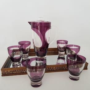 Esse jogo de copos são ;super resistentes e charmosos ;pelo fato de ser transparente e mesclados na cor LILÁS (UVA). Quando com bebida da sua preferência, eles farão um mesclado de cores incríveis. Sua base é mais grossa, projetada para manter firme quando cheio. ;Sirva com ;requinte e elegância que sua família e amigos merecem, item que fará toda ;diferença e com certeza, dignos de elogios. Perfeitos para quem tem bom gosto e se preocupa com os detalhes.