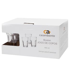 O Jogo de copos Boston é produzido em vidro de ótima qualidade garantindo assim resistência e durabilidade ao produto. Perfeito para Bares, Restaurantes, Confraternizações e Aniversários. Conta com 06 copos que combinam com qualquer ambiente, sendo para uma ocasião especial ou até mesmo para uso diário!