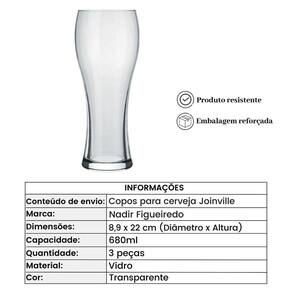 Esse belíssimo Jogo de copos em vidro 3 peças Joinville 680ml Transparente, vai super bem com qualquer tipo de decoração, graças ao seu aspecto clássico que combina com tudo, vai ornar perfeitamente com os demais utensílios que você tem. Serve cervejas especias de estilos variados.Ela será perfeita para usar em festas com seus amigos e família, seu design clean deixará suas comemorações ainda mais elegantes e sofisticadas.Fabricada em vidro de qualidade esse copo apresenta uma excelente resistência.Itens inclusos;3 copos em vidro Joinville 680ml para Cerveja TransparenteInformações Importantes;Medidas aproximadas da taça - 8,9 x 22cm Diâmetro x Altura Capacidade - 680mlComposição - VidroCor - TransparenteValidade - IndeterminadaConteúdo do envio - 1 unidade do Jogo de copos em vidro 3 peças Joinville 680ml TransparenteFabricante - Nadir FigueiredoProduto 100% nacionalMais Informações;Evite pancadas ou impactos pois podem trincar, lascar ou danificar o produto.Pode ser lavado em lava louças.Ao lavar use de preferência detergente neutro, esponja macia e enxague com água em abundância. Jogo de copos em vidro 3 peças Joinville 680ml Transparente