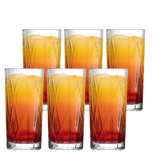 Indicada para: Sucos, Coquetéis ou Água. Material: Cristal. Conteúdo da Embalagem: 6 Copos. Capacidade: 390ml. Diâmetro: 7,4cm. Altura: 14,6cm.