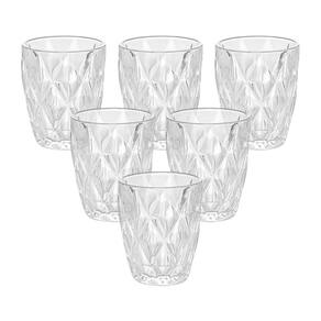 Com uma capacidade de 270ml, esses copos são perfeitos para servir água, sucos ou refrigerantes, proporcionando praticidade e versatilidade para o seu dia a dia. Além disso, eles possuem um corpo decorado com losangos em relevo, que trazem um brilho especial e dão um toque de glamour à sua decoração.