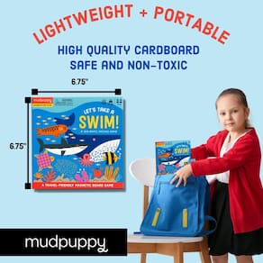 Mudpuppy Let's Take a Swim – Versão animal do oceano do jogo magnético de corrida com adoráveis ilustrações de criaturas marinhas para crianças de 4 a 10 anos, 2 a 6 jogadores - Jogo magnético para crianças – Mergulhe na emoção do jogo de corrida magnético Mudpuppy Let's Take A Swim! Este jogo de tabuleiro magnético adequado para viagens permite que as crianças escolham seu animal favorito do oceano — baleia, polvo, caranguejo, peixe, tartaruga ou foca — e corra em um curso subaquático. As peças magnéticas aderem firmemente ao tabuleiro, garantindo diversão ininterrupta, esteja você em casa, no carro ou em movimento. Perfeito para despertar a imaginação das crianças com um desafio divertido inspirado no oceano. - Fácil de jogar – Simples de aprender, mas infinitamente divertido, este jogo de corrida subaquática é ideal para crianças de 4 a 10 anos. Os jogadores giram seu caminho através do percurso aquático, enfrentando desafios e correndo para ver quem pode alcançar a linha de chegada primeiro. Projetado para ser inclusivo e divertido para todos, o jogo inclui um folheto de instruções que facilita a configuração e o jogo, mesmo para jogadores iniciantes. Com peças coloridas com tema oceânico, certamente manterá as crianças envolvidas por horas. - O que está incluído – Este conjunto de jogo completo vem com tudo o que é necessário para uma aventura aquática, incluindo um tabuleiro magnético de 15,8 cm x 15,9 cm, 6 peças magnéticas de jogo de animais, 2 spinners e um folheto de instruções detalhado. Todas as peças são projetadas para permanecerem seguras durante o jogo e embaladas perfeitamente no tabuleiro compacto quando não estiverem em uso. Com seu design divertido e configuração organizada, é perfeito para manter as crianças entretidas em casa ou durante a viagem. - Ótima atividade de viagem – o jogo de corrida magnético Let's Take A Swim é a atividade perfeita para crianças em movimento. O design magnético garante que todas as peças permaneçam no lugar, então não há preocupação em perder peças durante o jogo. Compacto e leve, é fácil de embalar para viagens e mantém as crianças entretidas durante longos passeios de carro, voos ou até mesmo em restaurantes. Uma maneira sem bagunça e envolvente de levar a diversão dos jogos de tabuleiro onde quer que você viaje! - Diversão sem tela – há mais de 25 anos, a Mudpuppy tem se dedicado a criar quebra-cabeças, brinquedos e jogos não digitais que incentivam a criatividade e a imaginação. O jogo de corrida magnético Let's Take A Swim continua esta tradição com um design durável de alta qualidade que atende aos regulamentos de segurança CPSIA, ASTM e CE. Este jogo seguro e cuidadosamente feito oferece uma pausa refrescante das telas enquanto oferece horas de brincadeiras educativas e envolventes para crianças.