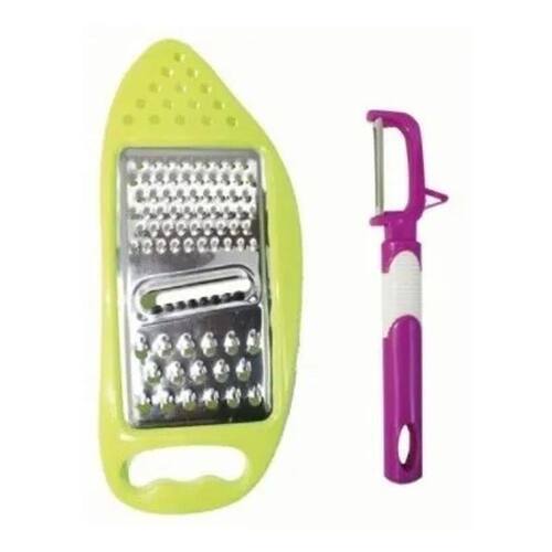 Kit de Cozinha 2 peças, possui os seguintes produtos: um belo ralador para frutas e legumes e um Fatiador com as medidas ideais para cortes e manuseio tem design diferenciado contendo proteção na Lâmina que é um grande diferencial, te proporcionando facilidade e praticidade para os cortes de alimentos.