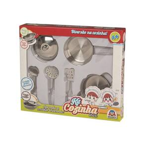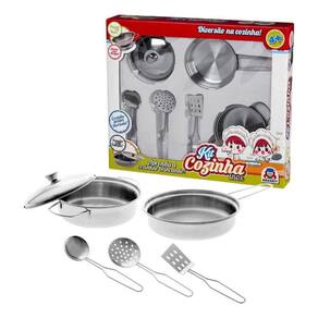 KIT COZINHA INFANTILAgora a brincadeira dos pequenos vai ficar ainda mais realista, completa e divertida. Um jogo de peças de cozinha feitas em inox idênticas as de verdade! As crianças vão brincar de forma criativa e segura, com seus próprios utensílios iguais aos da mamãe, em uma versão pequena, leve e segura para as crianças! Ajuda no desenvolvimento da coordenação motora, criatividade, imaginação de fantasia, socialização e interação entre as crianças.Preço por kit.ESPECIFICAÇÕES:- Composição / Material: Inox- Recomendando a partir de 04 anos- Dimensões da embalagem: 35,5 (comprimento) x 5,2 (largura) x 30,3cm (altura)- Diâmetro das panelas: 10cm- Contém: 6 peças- Certificado de Segurança Inmetro