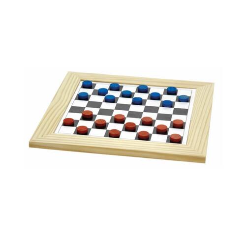 Contém um tabuleiro em MDF emoldurado tamanho 28 x 28 x 0,9 cm + 24 peças em madeira Plástico encolhível tamanho 28 x 28 x 2 cm