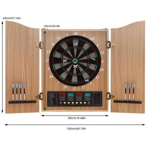Jogo De Dardos Eletrônico, LED Com Gabinete MDF, Até 16 Jogadores, 27 Jogos, 243 Variações - 12 Dardos De Ponta Suave E 88 Pontas de