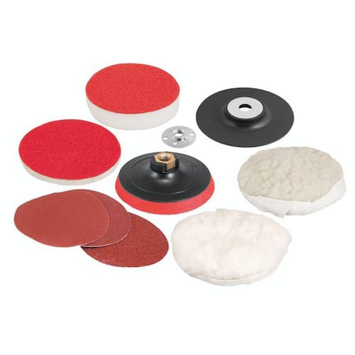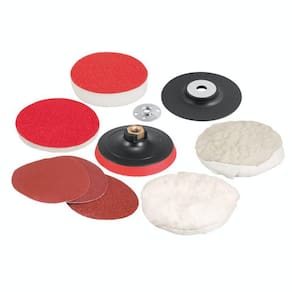 Jogo de discos para lixar e polir 4.1/2 VonderConteúdo da Embalagem: 1 Jogo de discos para lixamento e polimento com 9 peças, composto por: 1 disco com feltro, 1 disco com espuma, 1 boina de lã sintética, 1 boina de lã natural, 1 disco de lixa grão 40, 1 grão 120 e 1 grão 240, 1 suporte de PVC 4.1/2 com flange (rosca M14) e 1 suporte de PVC com sistema fixa fácil (rosca M14). Indicado para máquinas angulares rotativas de 4.1/2 115 mm, com acionamento elétrico ou pneumático. Ideal para lixamentos e polimentos.Sistema de substituição rápida de acessóriosEspecificações Técnicas:Diâmetro externo do jogo de discos para lixamento e polimento: 4.1/2 115 mm Rotação máxima (rpm): 12500 rpm