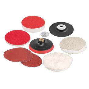 Jogo de discos para lixar e polir 4.1/2 Vonder Conteúdo da Embalagem: 1 Jogo de discos para lixamento e polimento com 9 peças, composto por: 1 disco com feltro, 1 disco com espuma, 1 boina de lã sintética, 1 boina de lã natural, 1 disco de lixa grão 40, 1 grão 120 e 1 grão 240, 1 suporte de PVC 4.1/2 com flange rosca M14 e 1 suporte de PVC com sistema fixa fácil rosca M14 . Indicado para máquinas angulares rotativas de 4.1/2 115 mm, com acionamento elétrico ou pneumático. Ideal para lixamentos e polimentos. Sistema de rápida de acessórios Especificações Técnicas: Diâmetro externo do jogo de discos para lixamento e polimento: 4.1/2 115 mm Rotação máxima rpm : 12500 rpm Ean: 7893946130572