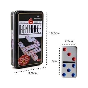 Contém: 1 Jogo de Dominó 28 Peças e 1 Lata com tampa (pra guardar o Dominó)