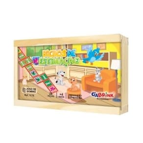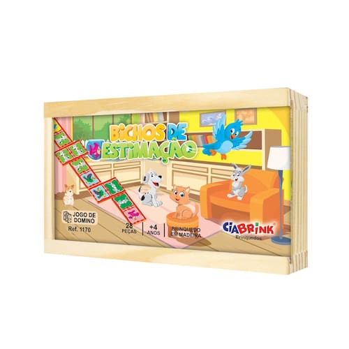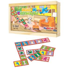Contém 28 peças de 7 x 3cm, com imagens de animais.