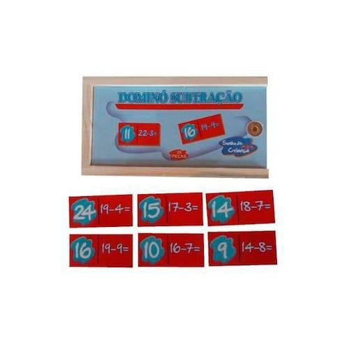 Brinquedos Educativos - Jogo de Dominó Subtração em MDF 28 peças