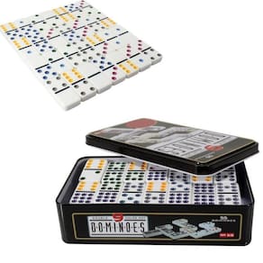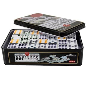 Jogo De Dominós Dominoes 55 Peças E 9 CoresCaracterísticas:Com este lindo Kit contendo 55 dominós, a diversão está garantida Você poderá jogar a qualquer hora e em qualquer lugar, pois é fácil de transportar e guardar. Divirta-se com seus amigos, ou com sua família. 55 pedras com 9 cores. Ótima dica para presentear aquele amigo ou familiar Informações Técnicas:- Material: Peças em Abs Maciço- Peso Total Aproximado: 980 gramas- Medidas Aproximadas Lata: 18,5cm C x 11,5 L x 5cm A- Peso Peça: 16 gramas- Medida Peça: 5cm x 2,5cm x 1cm - 55 Peças Itens Inclusos:- 01 Dominó 55 Peças- Lata