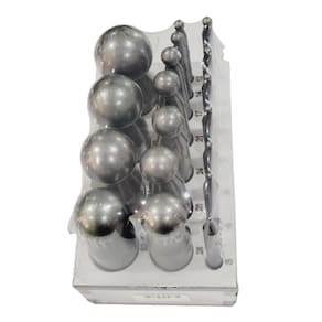 Conteúdo da Caixa: 18 peças com pontas arredondadas em diferentes tamanhos, organizadas em suporte plástico numerado para fácil identificação e uso.