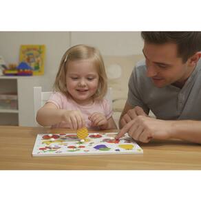 Introduza hábitos saudáveis e diversão educativa com o Jogo de Encaixe Frutinhas da Yin’s Brasil! Este tabuleiro pedagógico colorido apresenta frutas deliciosas que as crianças adoram, como melancia, banana e uva, projetado para estimular o reconhecimento visual e a linguagem desde cedo. O grande diferencial deste modelo são os pinos em cada peça, que permitem que a criança segure e encaixe as frutas com facilidade, desenvolvendo o movimento de pinça e a coordenação motora fina. Sob cada peça, há ilustrações que ajudam na associação e no raciocínio lógico. Feito em madeira leve e resistente, com acabamento seguro e cantos arredondados, é o brinquedo ideal para o método Montessori, promovendo a exploração sensorial e a paciência. Garanta um aprendizado lúdico e seguro com a qualidade Yin's Brasil.