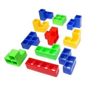 Características: Conteúdo da Embalagem: 1 base estabilizadora, 1 base meia lua (para o encaixe das peças), 16 peças tetris coloridas e 22 cartas