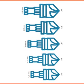 Características Técnicas Tipo: Escareador Quantidade: Jogo com 5 peças Sistema de corte: 5 pontas Haste: Cilíndrica lisa Diâmetro da haste: 6,35mm (1/4") Encaixe: Para furadeiras Aplicação: Escareamento e chanfro de furos Materiais indicados: Metal, Madeira, PVC, Plásticos em geral Código interno: 4801301 Marca: Starfer