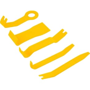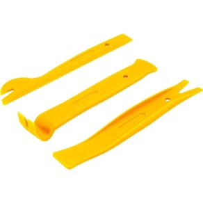 Material (tipo/composição): Nylon | Cor: Amarela | Dimensões das espátulas (C x L): 1 removedor largo (160 mm x 64 mm), 1 removedor de grampo com puxador (180 mm x 30 mm), 1 removedor acessível (195 mm x 30 mm), 1 removedor de grampo para estofado (213 mm x 20 mm), 1 removedor de ângulo (175 mm x 20 mm), 1 removedor angular de clipe para painel (195 mm x 30 mm), 1 removedor de clipe painel com serra (205 mm x 38 mm), 1 removedor de painel com ponta fina (205 mm x 23 mm), 1 removedor de painel ponta dupla (205 mm x 25 mm), 1 removedor de painel reto (205 mm x 17 mm), 1 removedor plano para painel (205 mm x 30 mm), 1 chave para clipe (130 mm), 1 chave para clipe (205 mm) | Quantidade de peças por embalagem: 20 Peças | Massa aproximada (peso) (kg): 1.15 kg